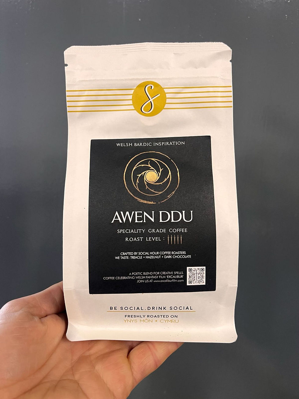 We're delighted to say our delicious coffee, Awen Ddu ("black inspiration") is now available. Created on the Isle of Druids, Ynys Môn, it's designed to bring the muse to creative minds of all types. Try it now! https://www.socialhourcoffee.uk/products/awen-ddu-excalibur-film?variant=52547645636955